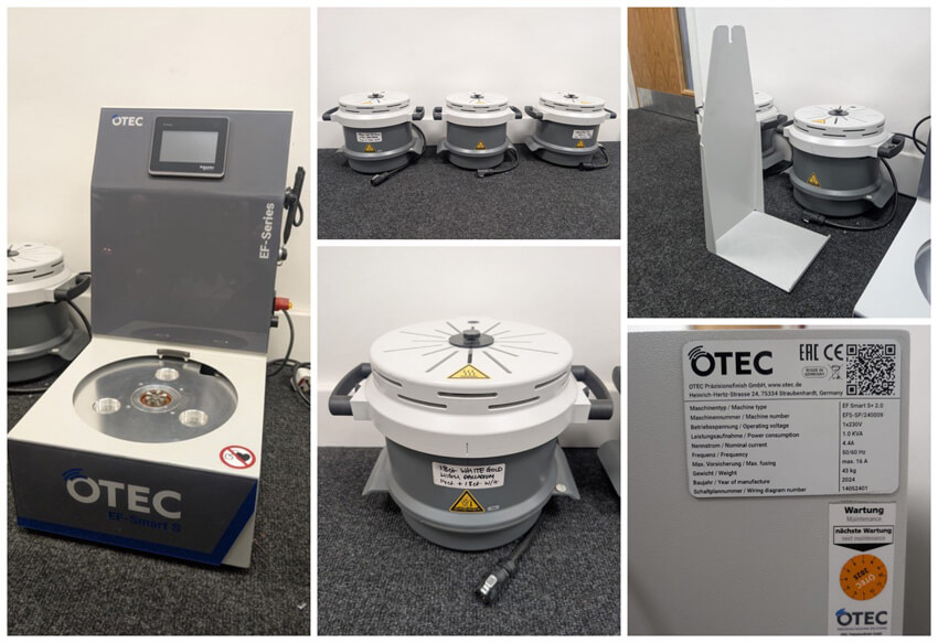 For sale we have our Otec EF-Smart S+. We have owned it from new and have only used it a handful of times. The reason for selling is we haven’t had the time to learn the machine to incorporate it into our manufacturing process. Extras included in the sale are 3 processing pots so you can switch between your media with ease, as well as a lid holder. We sent sample pieces to Otec and have detailed reports for processing 9ct and 18ct white and yellow gold with the machine. The S+ is the first machine on the market which can process white gold with palladium content.