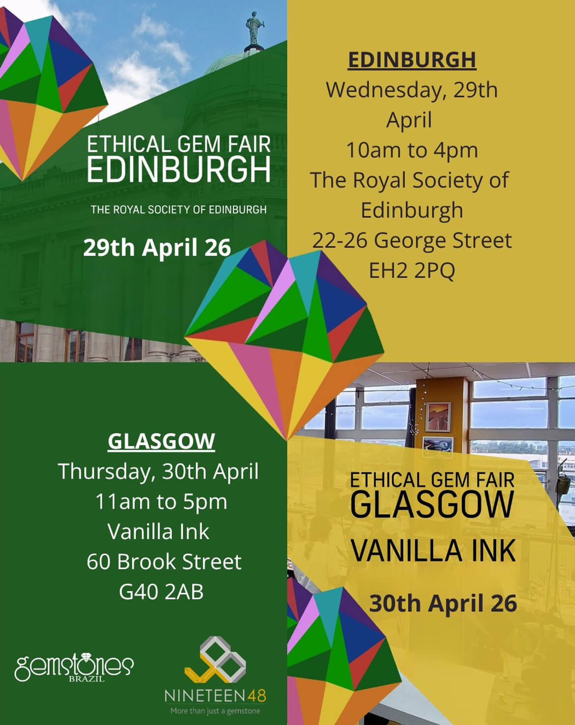 Nineteen48 and Gemstones Brazil are collaborating once again to host pop-up gem fairs in Edinburgh and Glasgow.