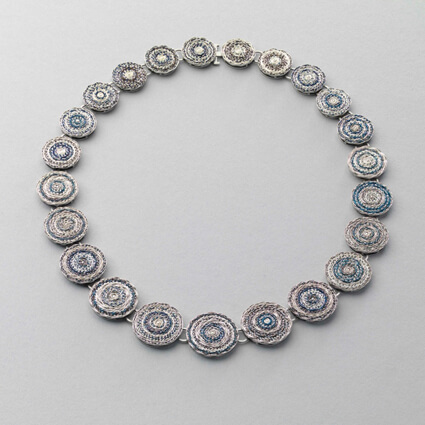 Andrew Lamb Vortex Necklace 2022 18ct white gold, silver, platinum and titanium photo: Shannon Tofts Photograph
