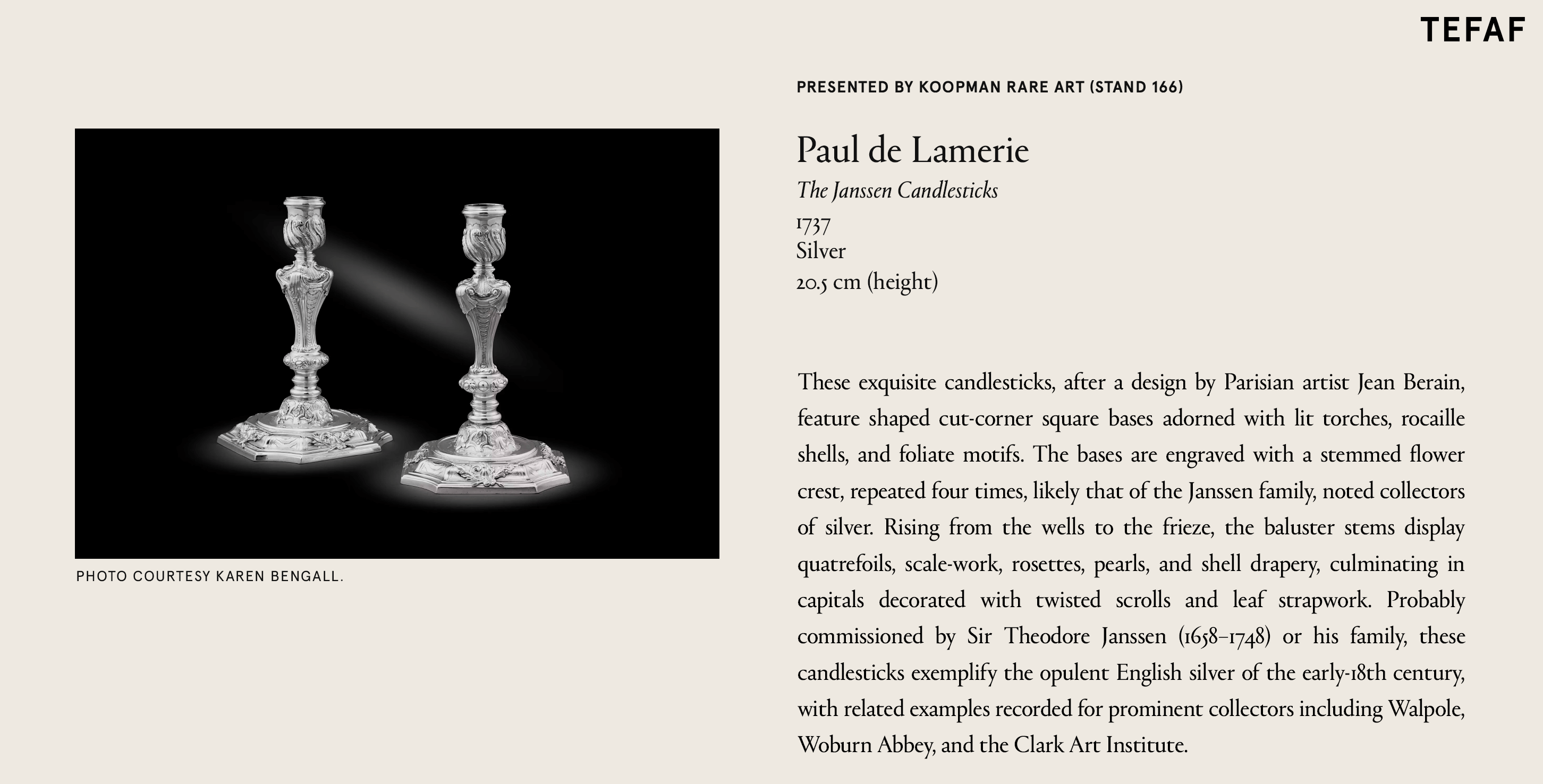 For relevant information regarding TEFAF Maastricht, please visit http://www.tefaf.com.