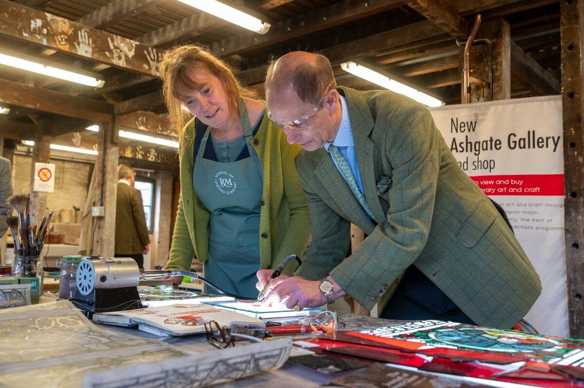 The Duke is passionate about the arts and gives much of his time to organisations that enable young people to develop their skills. His Royal Highness spent the day learning more about the special role of craft in Farnham through visits to several organisations.