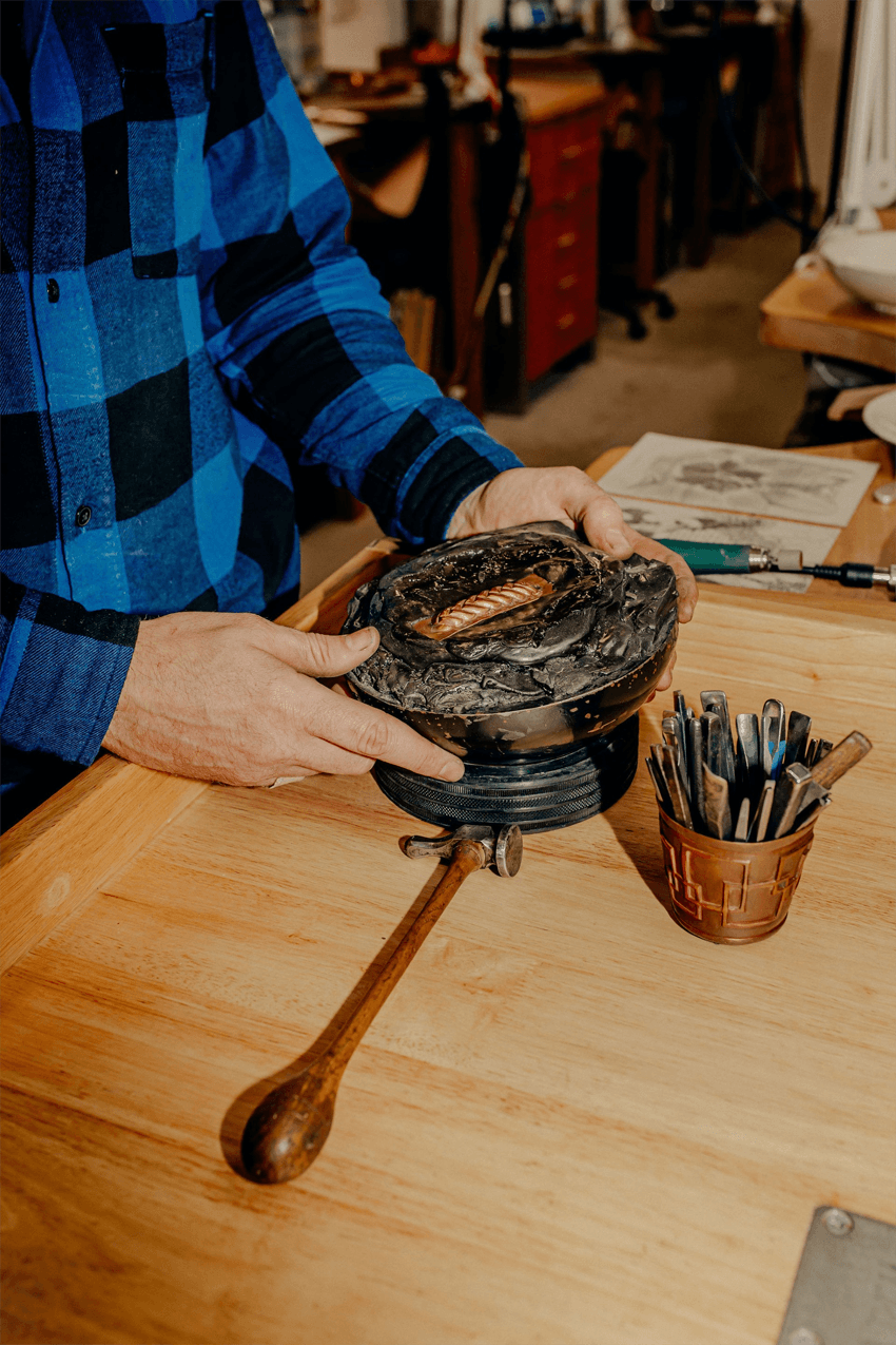 Raising · Forming · Fabrication · Chasing · Engraving · Enamelling · Casting · Finishing · Polishing · Design · Hand rendering · Smallwork · Commission work · Exhibition making