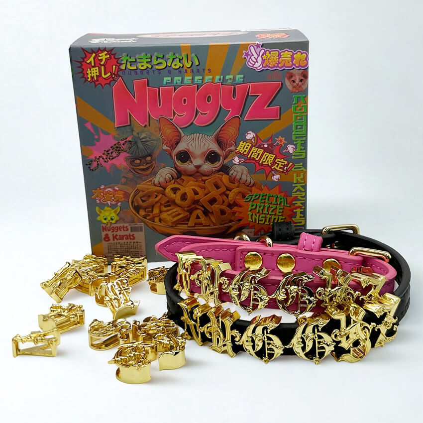 Nuggets & Karats, the luxury jewelry brand celebrated for its exclusive and limited-edition pieces, is excited to unveil Nuggyz, an exquisite new collection that redefines pet fashion with unparalleled elegance. Crafted for discerning pet owners, Nuggyz features stunning 18-karat gold-plated brass letter pendants, each designed in an eye-catching gothic font and adorned with delicate floral accents.