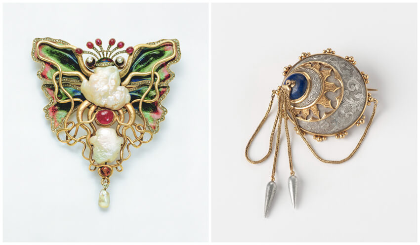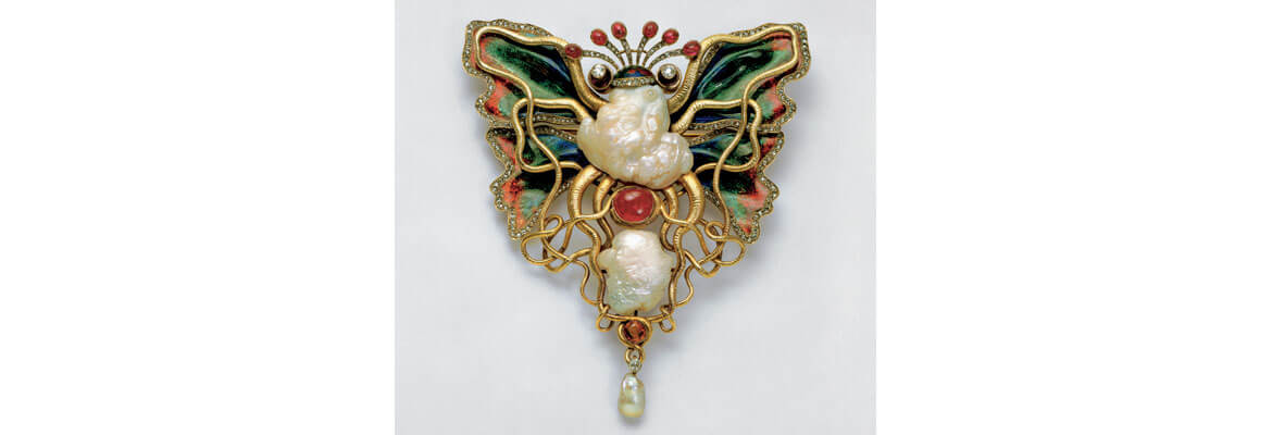 The exhibition brings together high-calibre loans from numerous public institutions, including the British Museum and the Victoria & Albert Museum, the Fitzwilliam Museum and the Musée Lalique, as well as selected objects from private collections. Pforzheim’s Jewellery Museum is also represented with five precious exhibits: a brooch by Lucien Falize, which was very unusual in 1858 due to its aluminium material, two brooches by the innovator of jewellery art, René Lalique – and the 'Poison' breast ornament by Georges Fouquet, on permanent loan from the Sparkasse Pforzheim Calw Art Foundation, as well as the most spectacular piece of German Art Nouveau jewellery, the 'Octopus and Butterfly' brooch by Lucas Wilhelm von Cranach.